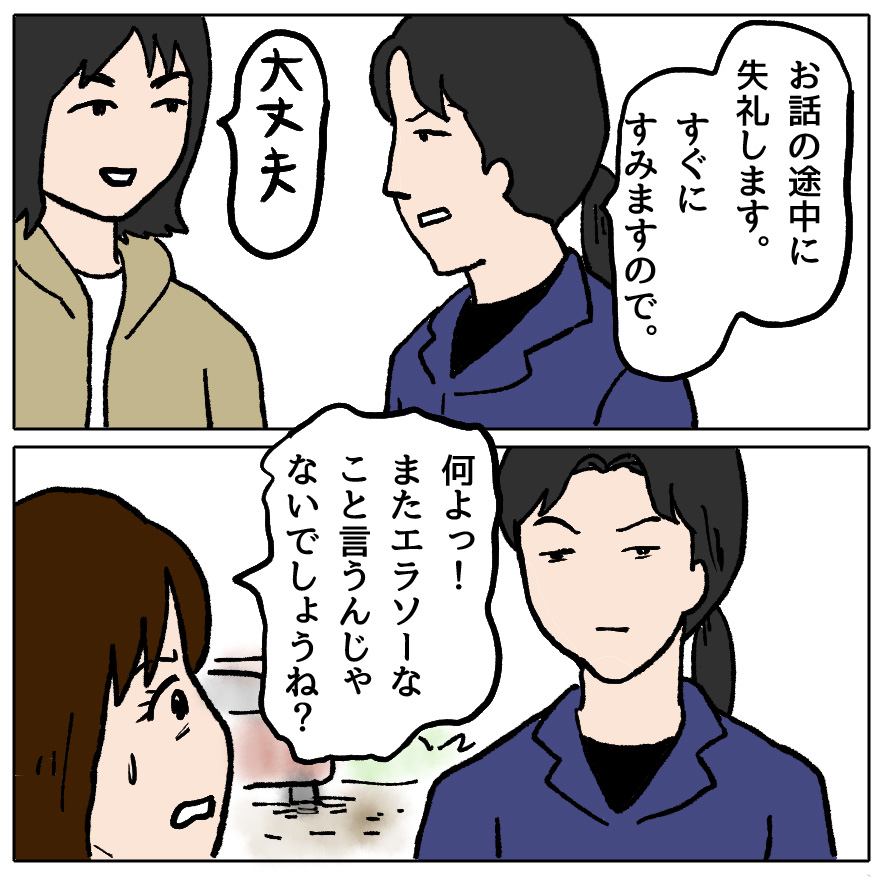 さえちゃんの様な人に何を言っても通じないし疲れるし腹立つだけなので本当はスルーしたいところを、子どものためを思って声をかけるアイちゃんママ。