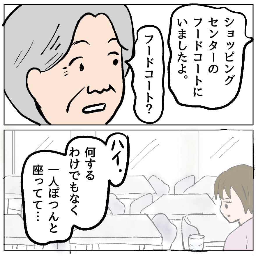 何も買わずにフードコートに居座られるのは迷惑すぎる。知り合いが通りかかったら、かわいそうなさえちゃんを演じて、おごってもらおうとしていたのかも。