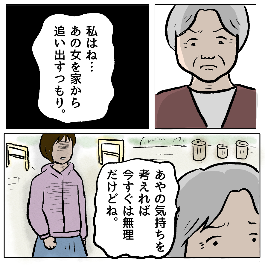 お姑さんはあやちゃんのためにすごく頑張ってるんだから、持田にひどいことしてるのかもなんて思わないでほしい