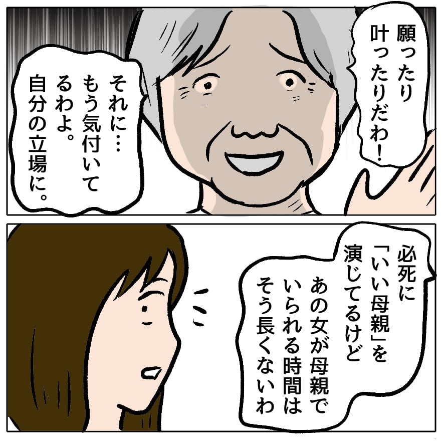 あやの気持ちをくむのが理由でも、いつか追い出すにしても、子供にとっては早い、遅いは関係なく、心に傷が残るのはたしかなんだから、さっさと離婚をすれば、さえは働く事が必要不可欠になるし、先延ばしにすれば、年齢、体力を考えると早めにした方がさえの為だし、あやも家族からハブかれて、惨めに落ちて行く母親の姿をみないで済むと思う。