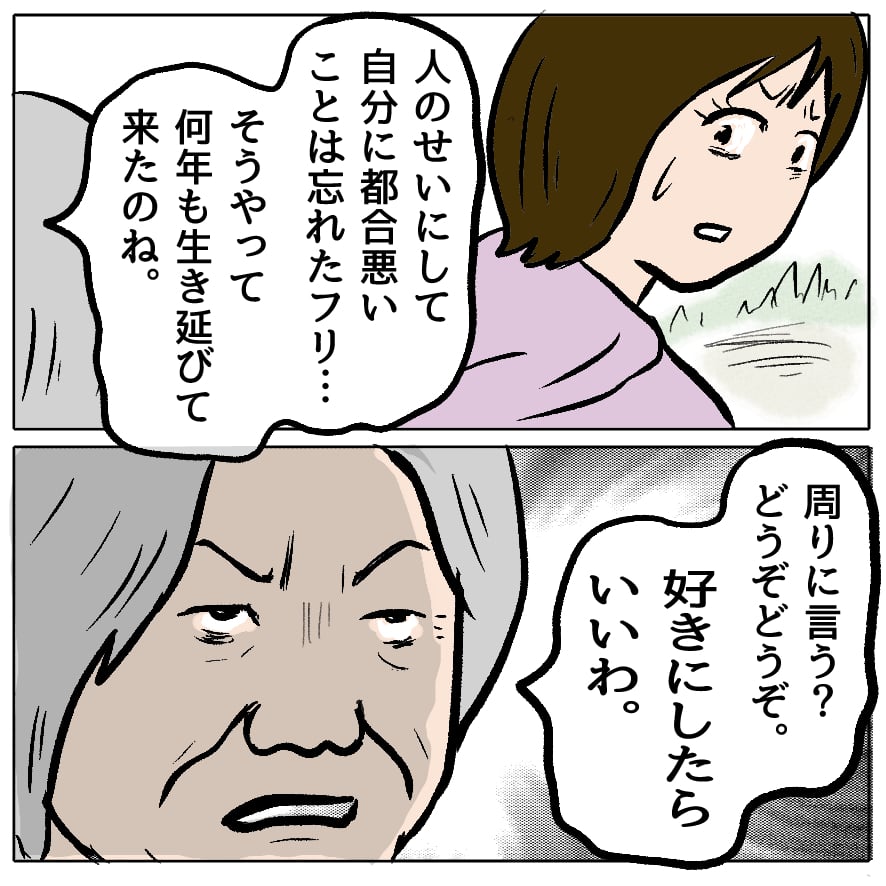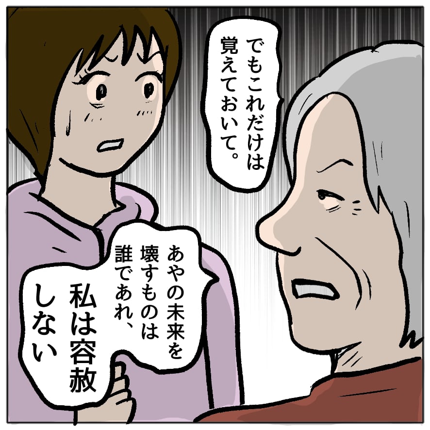 気持ちはわかる!気持ちはわかるけど、不必要に追い詰めすぎではないか??後は祖母に任せて無視、とことん距離を取るのが1番良かったような。漫画のゆうこさんの憎しみ溢れた表情に複雑な思いです。