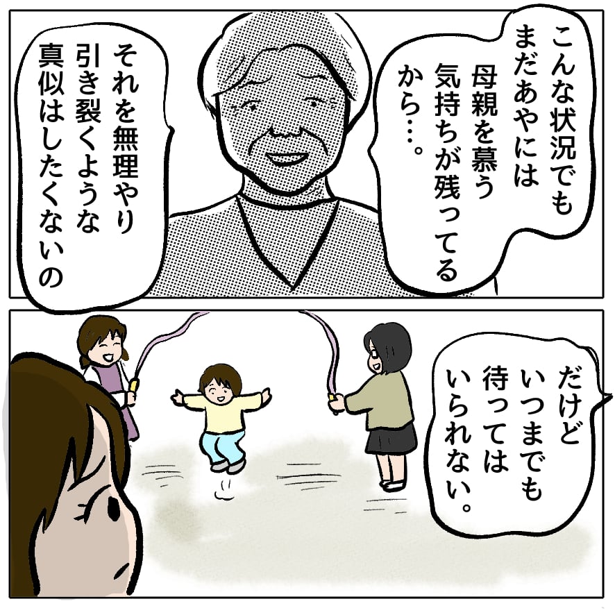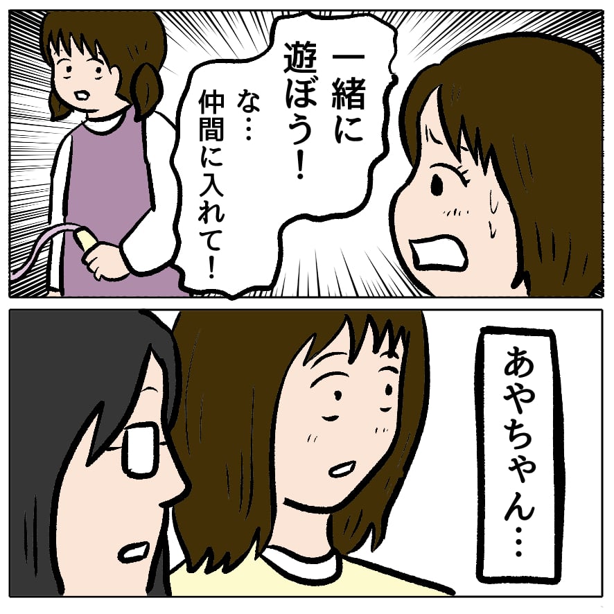 お姑さんに連れてこられるようになってからあやちゃんは、むーちゃんやチカちゃんと一緒の公園にいても、今まで一緒に遊ぶことはなかったということですかね?