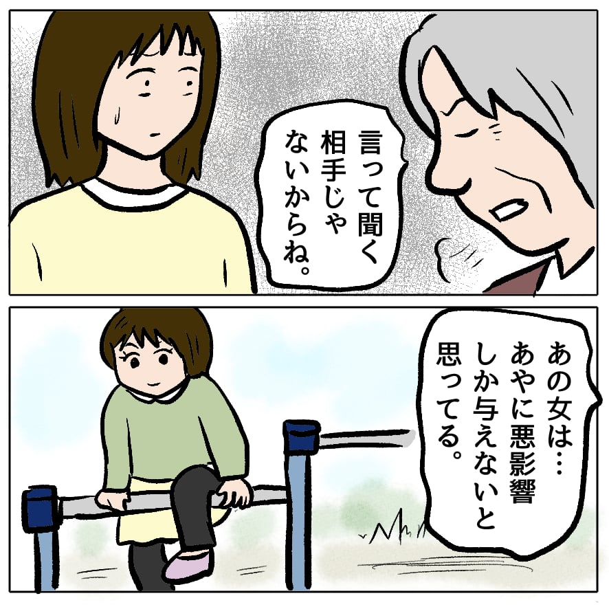 お姑さんに連れてこられるようになってからあやちゃんは、むーちゃんやチカちゃんと一緒の公園にいても、今まで一緒に遊ぶことはなかったということですかね?