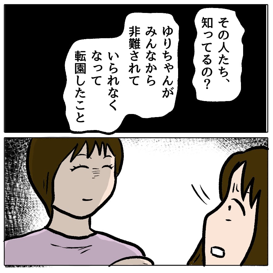 転園の件は遠足でも同じやり取りがあったけど、その時点で新しい園の保護者たちは皆ゆりちゃん側の味方だったということをやっぱり忘れてるな。