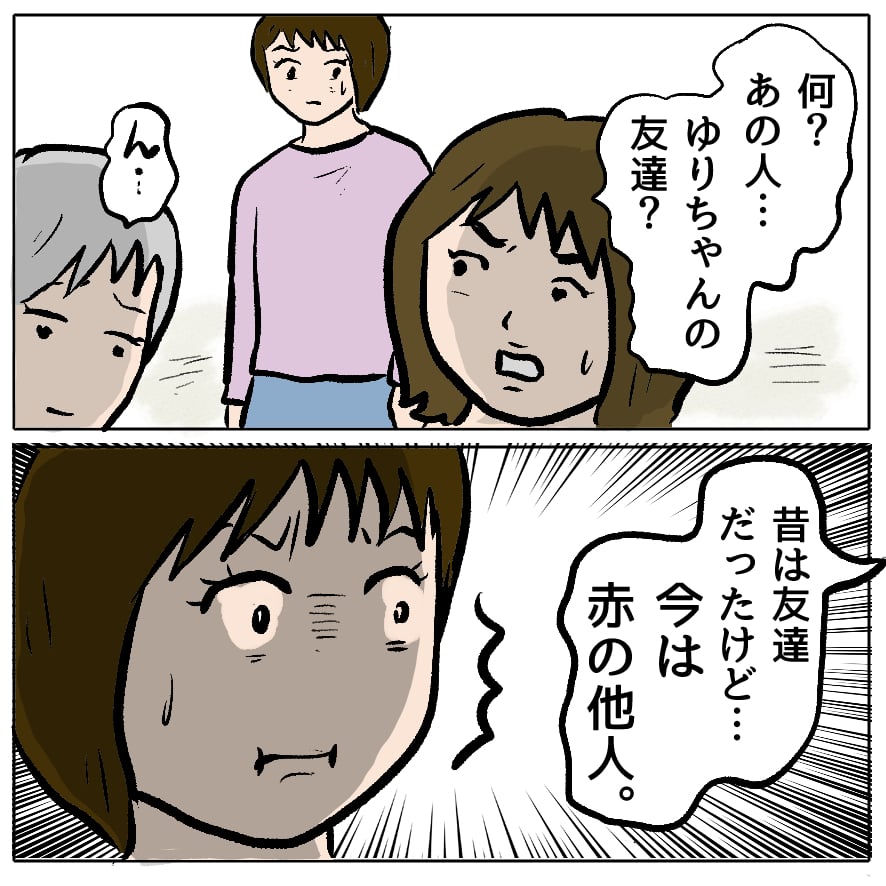 やさしいゆりちゃんからも「赤の他人」って言われてましたね。さえ、ショックを受けた顔していたけどあんなに人をコケにしといて一体何を期待してたん?友達と思われてて当然と思ってたん?