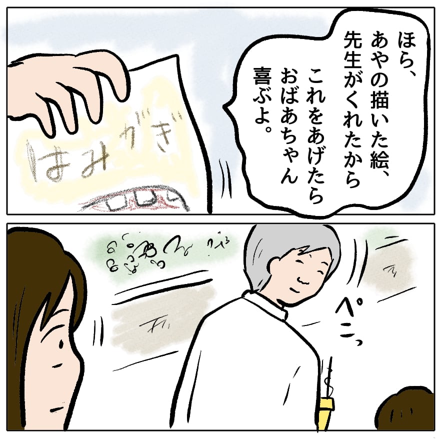 あやちゃん、花むしるのは良くないけど「おばあちゃんのために少しでもきれいな花を…」の一心だったんですね。おばあちゃん大好きなんだね。