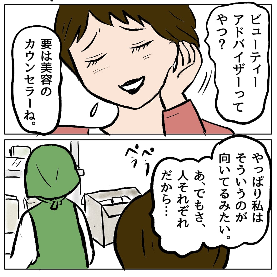 またお客様に口ごたえして接客態度が悪いとか、他の美容部員さんの反感買うようなことする様子が目に浮かぶ。