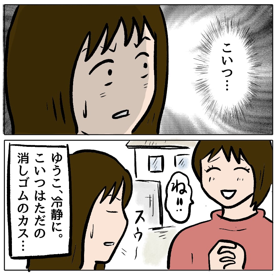 消しゴムのカスは仕事をやり終えた後の残りかすなので、さえちゃんと同類にしてしまうのが可哀そうな気がしてきました。
