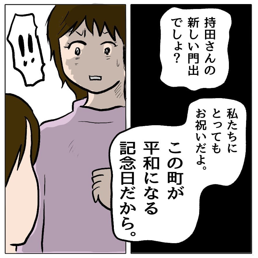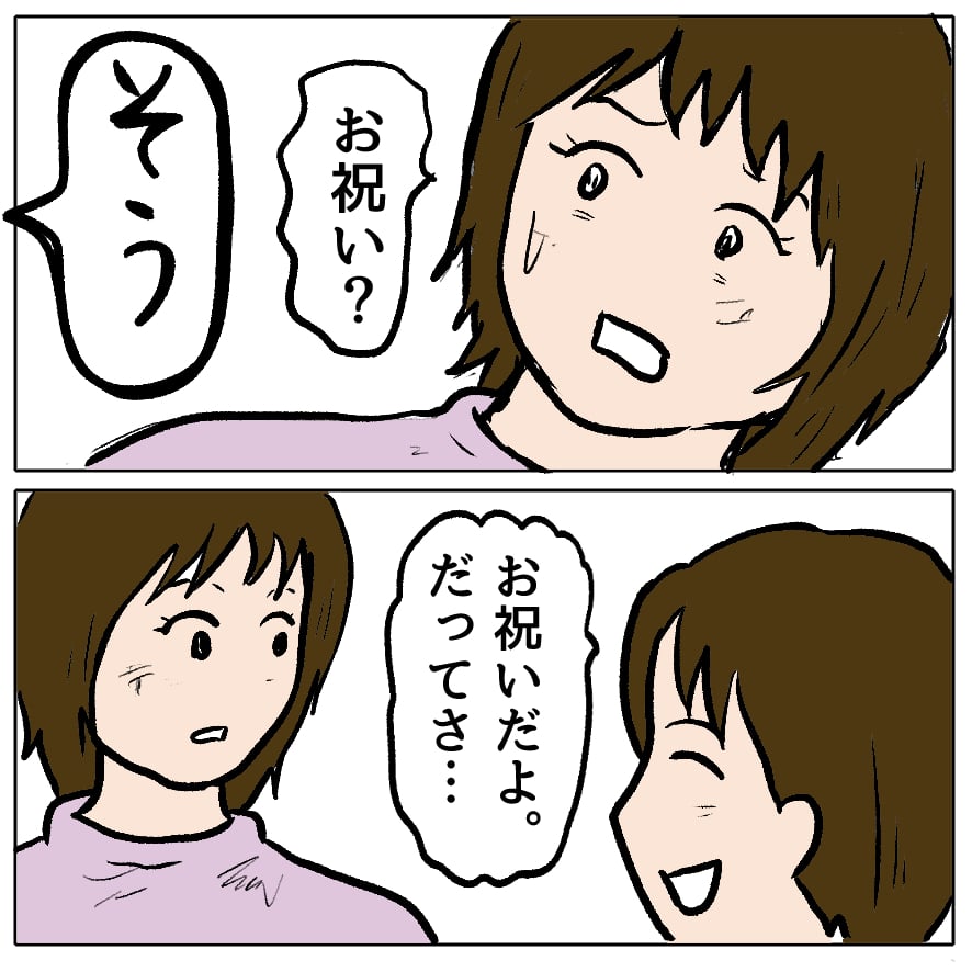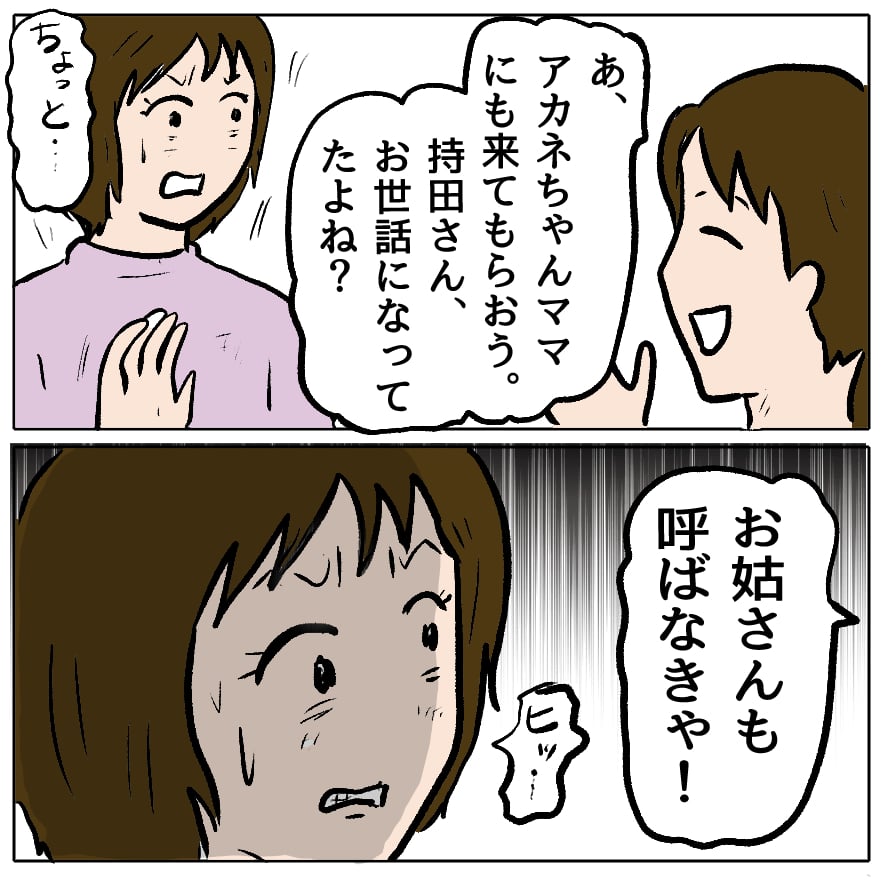 多分(さえの中で勝てると見くびってる)ゆうこさんやチカちゃんママ相手に「夢破れて一人実家に帰る可哀想な私独演会」をやって別れを惜しんでもらうつもりだったのが、さえを言い負かしそうなミネちゃんママやあかねちゃんママ、義母なども呼んで盛大にお祝いすると言われたから都合の良い妄想が崩れたんだろうな。
