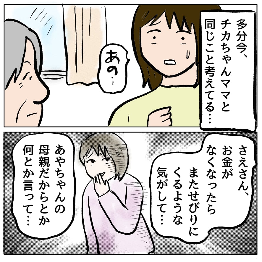 お姑さん長生きして欲しい。旦那さんだけになったらまたさえの好き放題が始まりそう。あやちゃんもお姑さんのもとで健やかに成長して欲しい。