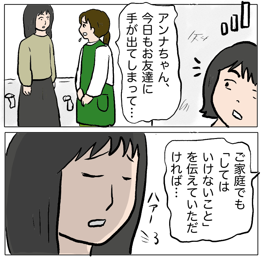 「ママは嫌だと思ったから叩いたの。だからアンナも嫌だと思ったら叩いていいのよ」とか