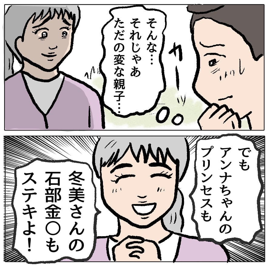 最初凄い嫌な女の冬美さん。でももしかしてかつこさん的なキャラ?(知ってますか?(笑))最初電車の中から始まりキッズランドやら、いや~な人だったけど、これから応援してあげる?感じ?(笑)