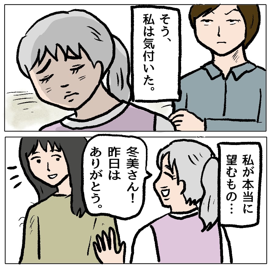 サヤカは「お礼を兼ねて」さらに冬美を傷つけるのが本当の望みなんだろうし、君枝もサヤカの反省してるような態度を「フリ」だと疑ってそう。