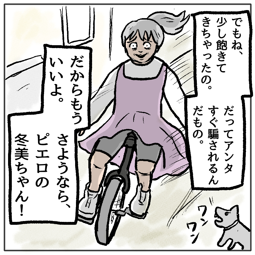 サヤカが一輪車に乗ってるコマの右下に